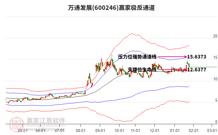 萬通發(fā)展(600246)根據(jù)贏家江恩極反通道趨勢(shì)工具展示,上方壓力位15.4358,下方支撐位12.4838。萬通發(fā)展(600246)處于贏家江恩多頭主線形態(tài),從1月15日形成底分型后持續(xù)上攻,今日突