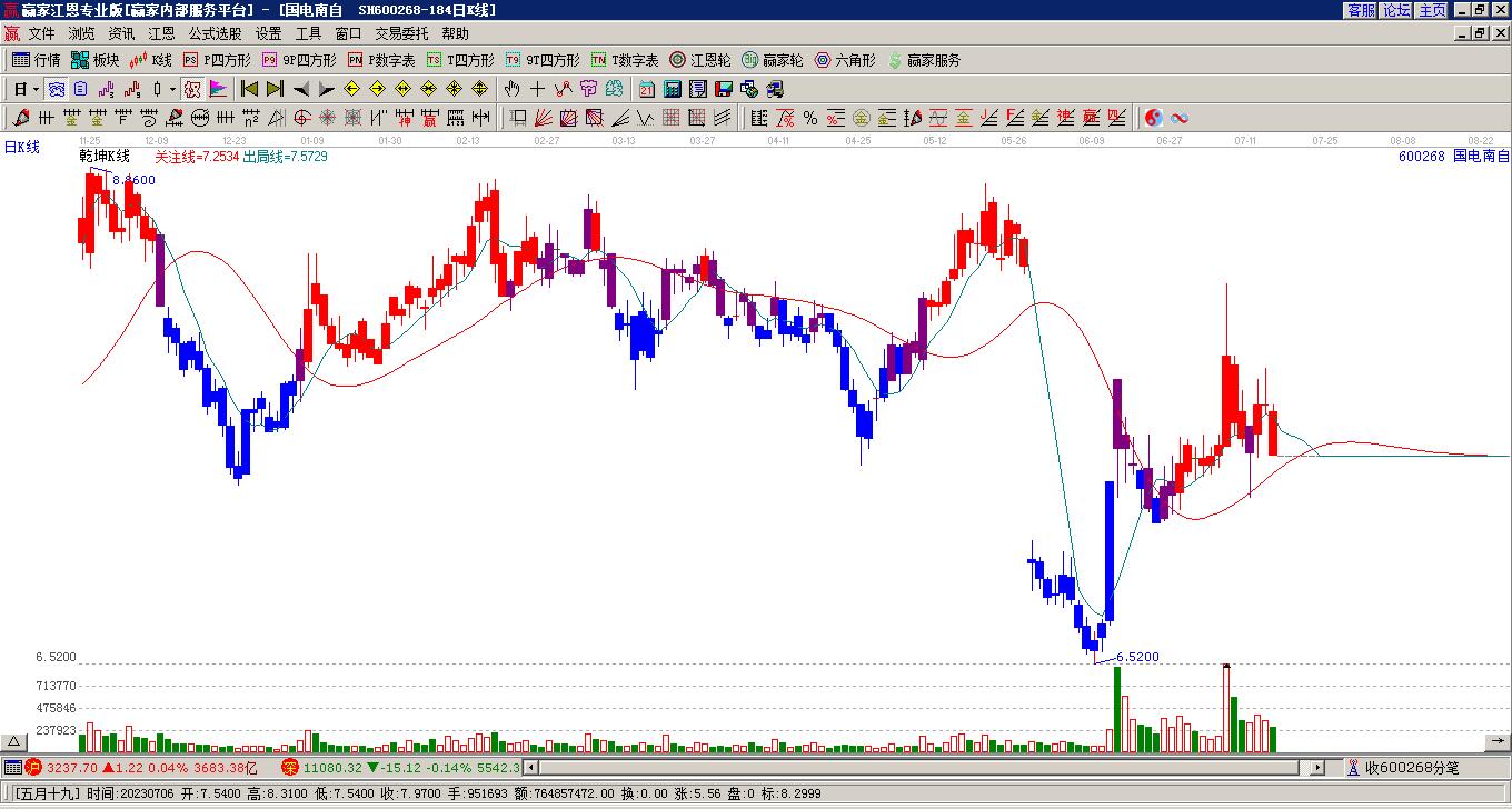 國(guó)電南自今日漲停,突破極反通道強(qiáng)勢(shì)通道線