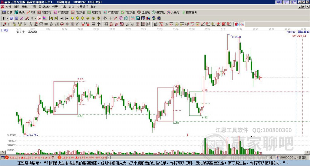 國(guó)電南自600268低開(kāi)收漲停,突破波段百分比工具壓力位13.46元