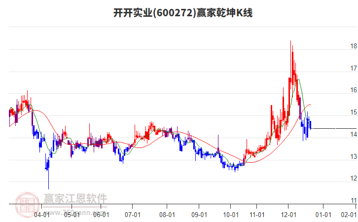 開開實業(yè)近期高點18.4持續(xù)下跌,漲幅回落27.51%,目前處于上行趨勢