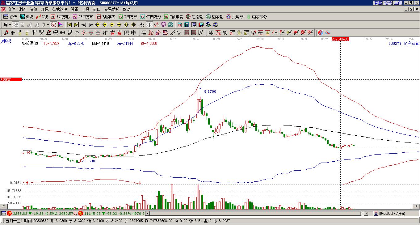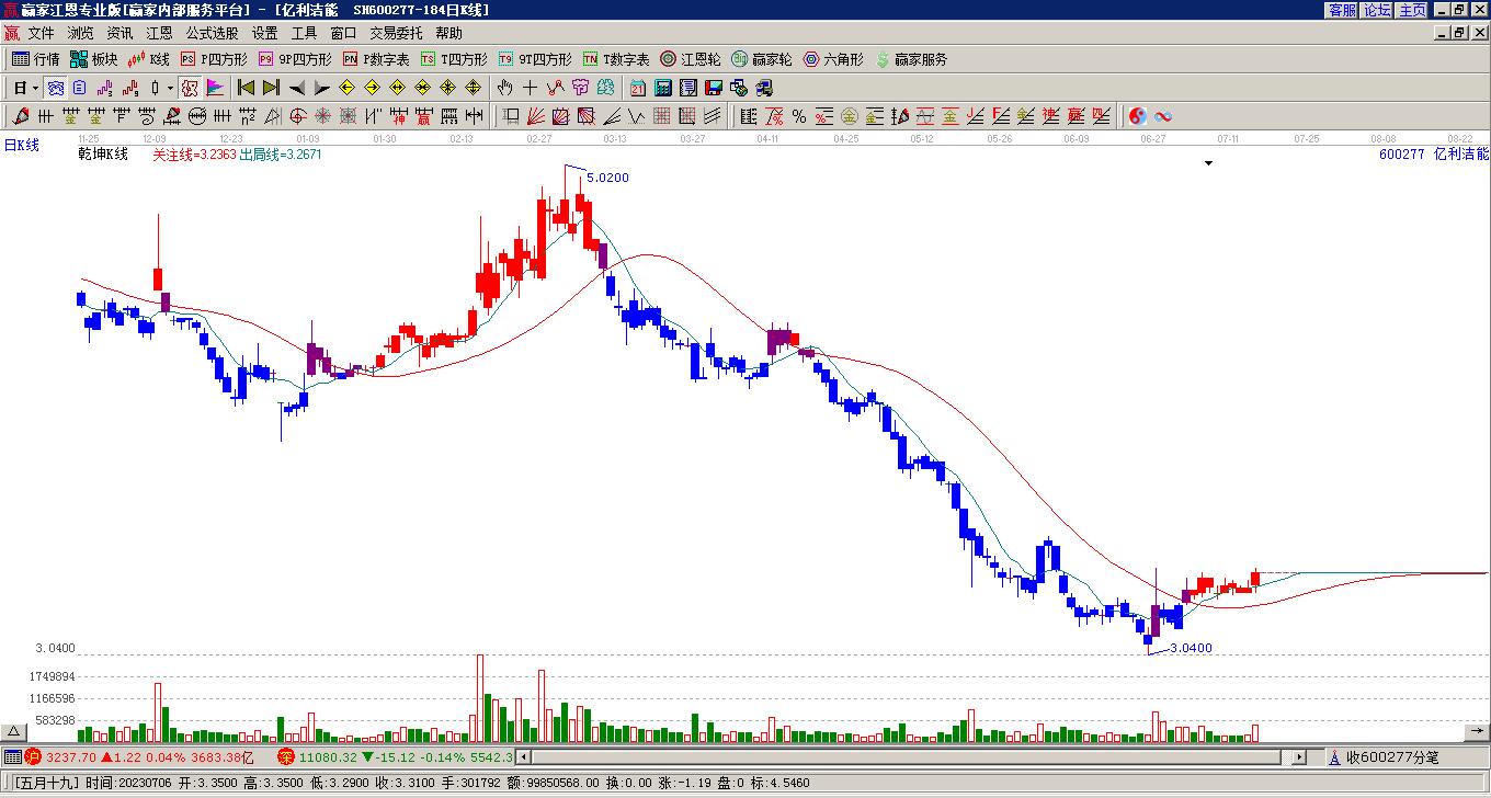 600277億利潔能形成十字星孕線形態(tài),下穿贏家十二宮下跌結(jié)構(gòu)底部線