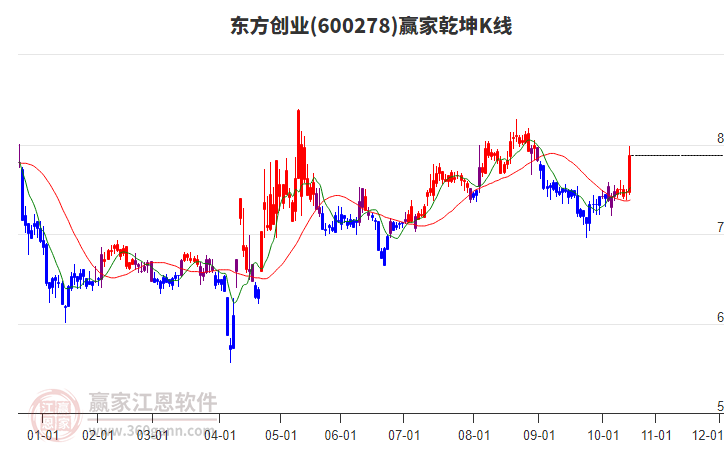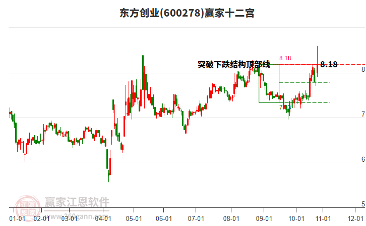 600278東方創(chuàng)業(yè)處于贏家江恩空頭中期反彈形態(tài),11月19日發(fā)出江恩筑頂信號后,經(jīng)過48日,今日再次發(fā)出江恩底分型并發(fā)出江恩筑底信號,中長線均在空頭下跌趨勢中。600278東方創(chuàng)業(yè)根據(jù)贏家江恩極反通