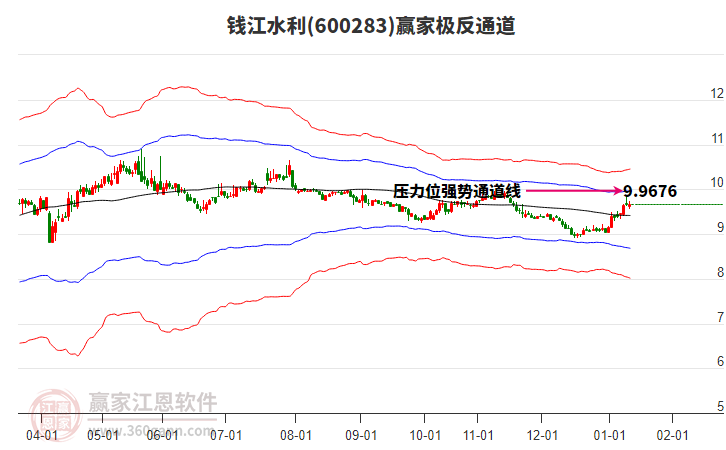依據(jù)贏家江恩系統(tǒng)趨勢(shì)工具極反通道分析判斷錢(qián)江水利600283運(yùn)行在生命線(xiàn)以下弱勢(shì)區(qū)域,根據(jù)規(guī)則該股短線(xiàn)輕倉(cāng)參與,股價(jià)跌至弱勢(shì)外軌線(xiàn)后波段再結(jié)合其它工具信號(hào)建倉(cāng)。應(yīng)用口訣是:生命線(xiàn)上強(qiáng)勢(shì)走,生命線(xiàn)下難抬頭;紅黃兩條外軌線(xiàn),壓力支撐顯勢(shì)頭。
