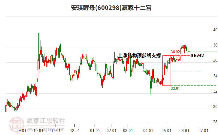 依據(jù)贏家江恩系統(tǒng)趨勢(shì)工具極反通道分析判斷安琪酵母600298運(yùn)行在生命線以上強(qiáng)勢(shì)區(qū)域,根據(jù)規(guī)則該股可短線、波段結(jié)合操作;結(jié)合物極必反的原理通過分鐘圖做盤中差價(jià),應(yīng)用口訣是:生命線上強(qiáng)勢(shì)走,生命線下難抬頭;紅黃兩條外軌線,壓力支撐顯勢(shì)頭。