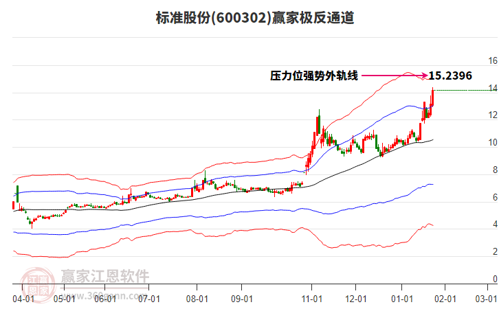 600302標(biāo)準(zhǔn)股份最高價(jià)上穿藍(lán)色外軌線 小幅上漲2.26%