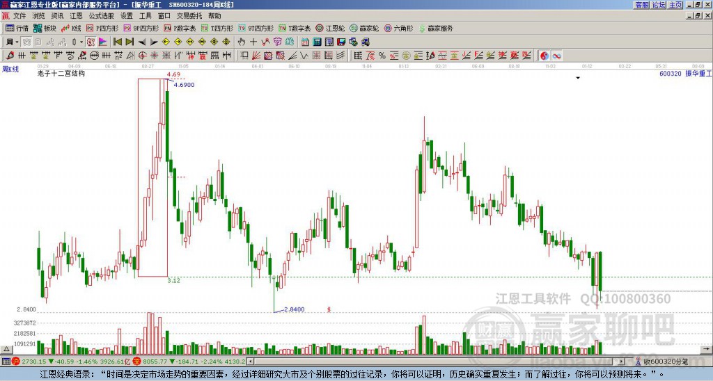 600320振華重工處于贏家江恩多頭中期回調(diào)形態(tài),今日重心上移,短期持續(xù)上漲,6月30日發(fā)出中期江恩筑底信號后,經(jīng)過182日,今日形成中期筑頂信號,若持續(xù)下跌,觸發(fā)長期筑頂信號,600320振華重工將