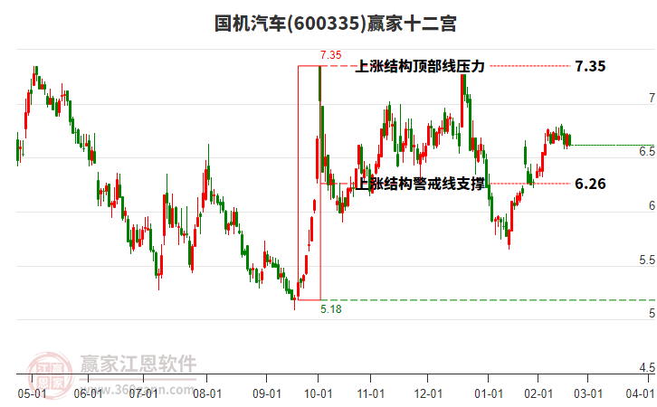 依據(jù)贏家江恩系統(tǒng)趨勢(shì)工具極反通道分析判斷國(guó)機(jī)汽車600335運(yùn)行在生命線以上強(qiáng)勢(shì)區(qū)域,根據(jù)規(guī)則該股可短線、波段結(jié)合操作;結(jié)合物極必反的原理通過(guò)分鐘圖做盤中差價(jià),應(yīng)用口訣是:生命線上強(qiáng)勢(shì)走,生命線下難抬頭;紅黃兩條外軌線,壓力支撐顯勢(shì)頭。
