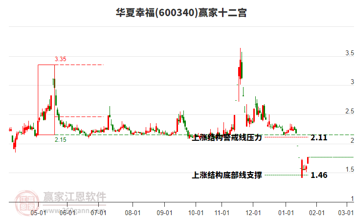 600340華夏幸福根據(jù)贏家江恩極反通道趨勢工具展示,上方壓力位2.0523,下方支撐位1.5555。600340華夏幸福處于贏家江恩空頭主線形態(tài),2月4日發(fā)出江恩筑底信號后,經(jīng)過7日,今日形成短期筑