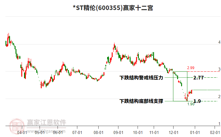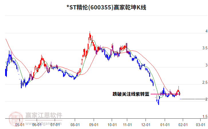 *ST精倫(600355)處于贏家江恩空頭主線形態(tài),今日重心持續(xù)下移,短期延續(xù)下跌趨勢,8月11日發(fā)出中期江恩筑底信號后,經(jīng)過178日,今日形成中期筑頂信號,注意風(fēng)險(xiǎn)規(guī)避。*ST精倫(600355)根