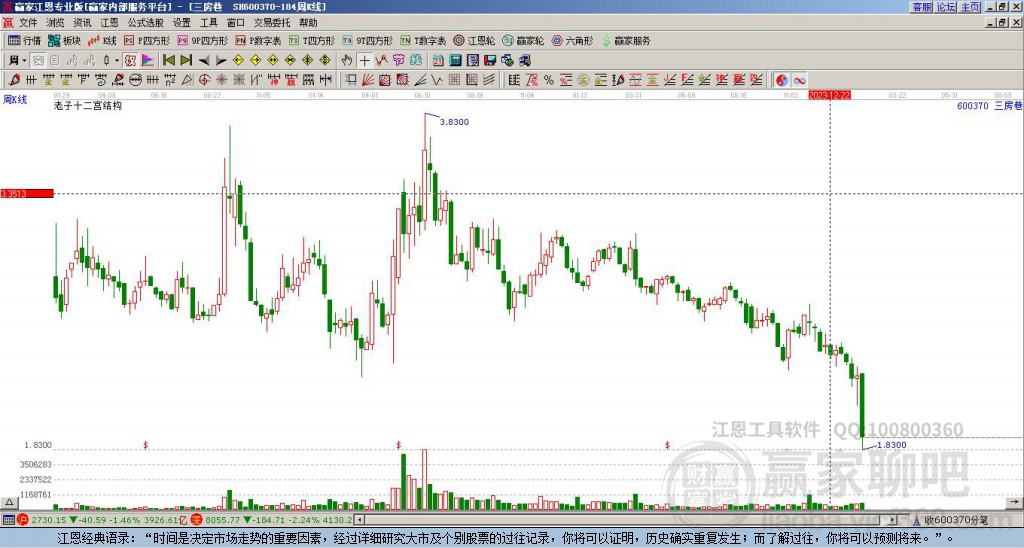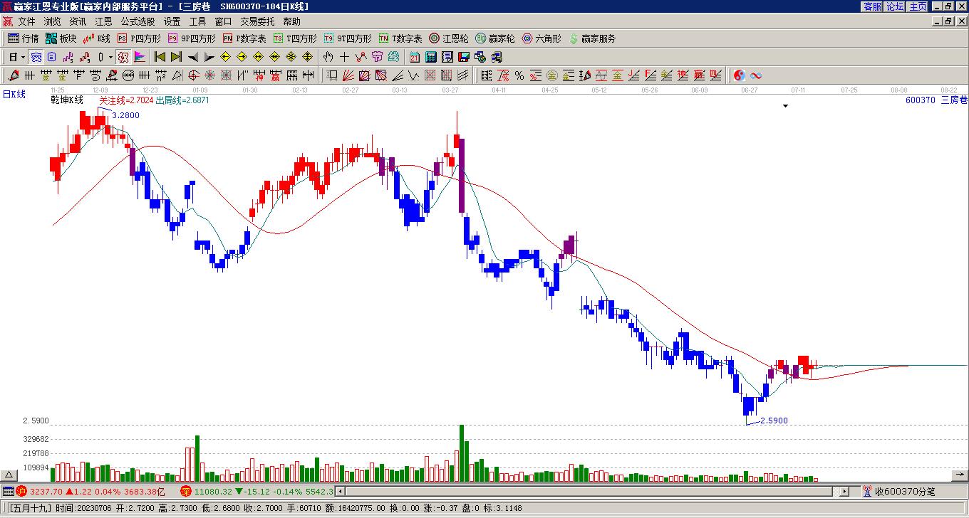 600370三房巷根據(jù)贏家江恩極反通道趨勢工具展示,上方壓力位2.9116,下方支撐位2.4038。600370三房巷處于贏家江恩多頭次主線形態(tài),從1月23日形成頂分型后持續(xù)下跌,重心下移,今日跌破前