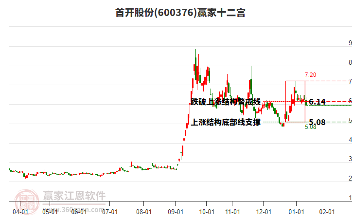 600376首開(kāi)股份低開(kāi)收漲停,受贏家十二宮上漲結(jié)構(gòu)頂部線(xiàn)壓制