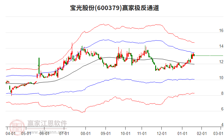 依據(jù)贏家江恩系統(tǒng)趨勢(shì)工具極反通道分析判斷寶光股份600379運(yùn)行在生命線以下弱勢(shì)區(qū)域,根據(jù)規(guī)則該股短線輕倉(cāng)參與,股價(jià)跌至弱勢(shì)外軌線后波段再結(jié)合其它工具信號(hào)建倉(cāng)。應(yīng)用口訣是:生命線上強(qiáng)勢(shì)走,生命線下難抬頭;紅黃兩條外軌線,壓力支撐顯勢(shì)頭。