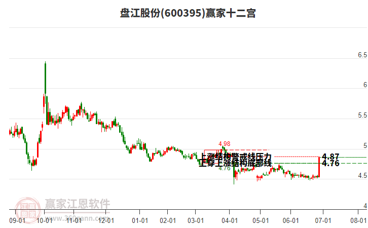 盤江股份(600395)低開收穿頭破腳大陽線,2月4日收盤價為5.97