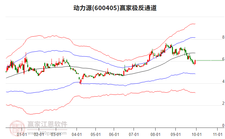 依據(jù)贏家江恩系統(tǒng)趨勢(shì)工具極反通道分析判斷動(dòng)力源600405運(yùn)行在生命線以下弱勢(shì)區(qū)域,根據(jù)規(guī)則該股短線輕倉(cāng)參與,股價(jià)跌至弱勢(shì)外軌線后波段再結(jié)合其它工具信號(hào)建倉(cāng)。應(yīng)用口訣是:生命線上強(qiáng)勢(shì)走,生命線下難抬頭;紅黃兩條外軌線,壓力支撐顯勢(shì)頭。