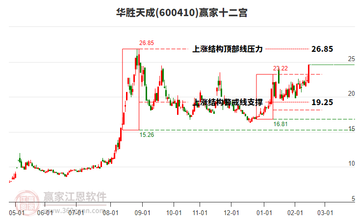 2月13日K線強(qiáng)勢(shì)漲停,目前受到113日前形成的上漲結(jié)構(gòu)頂部線26.85壓制,本輪自前方低點(diǎn)2月2日19.86元,上漲至今日已持續(xù)9日,多方能量得到釋放,空方能量逐漸增強(qiáng)。依據(jù)贏家十二宮結(jié)構(gòu)規(guī)則,股價(jià)若不能有效突破站穩(wěn)上漲結(jié)構(gòu)頂部線,多方能量逐漸衰竭,空方能量逐漸主導(dǎo),向下方警戒線19.25位置附近尋找新的平衡位。若向上突破站穩(wěn)頂部線26.85,有望突破前期形成的高點(diǎn)。