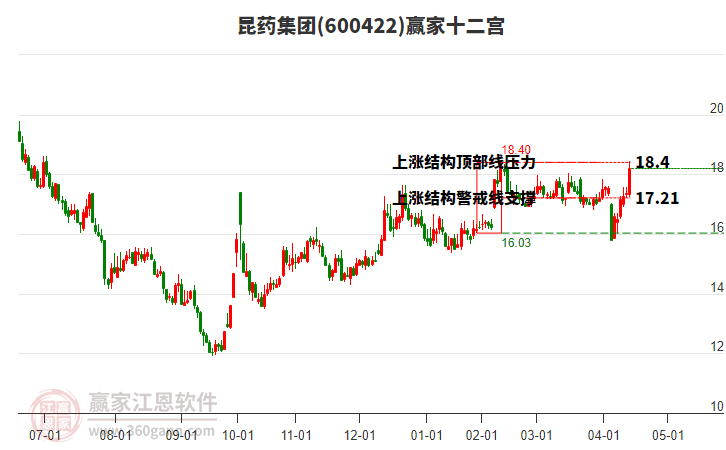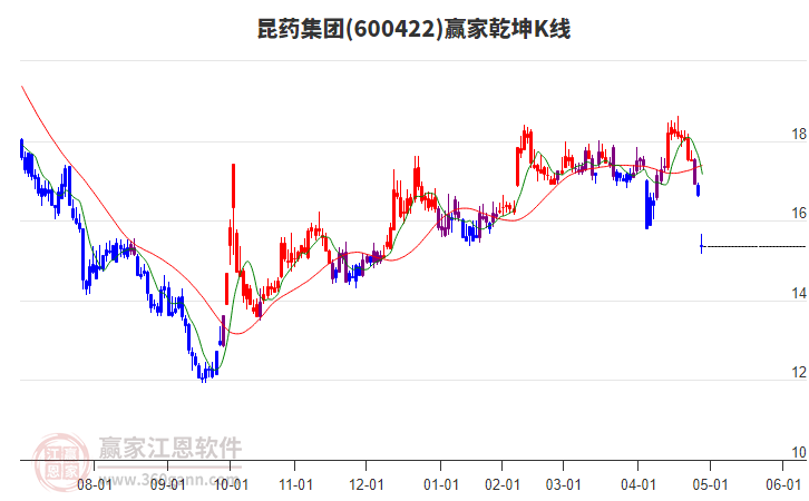 依據(jù)贏家江恩系統(tǒng)趨勢工具極反通道分析判斷昆藥集團600422運行在生命線以上強勢區(qū)域,根據(jù)規(guī)則該股可短線、波段結合操作;結合物極必反的原理通過分鐘圖做盤中差價,應用口訣是:生命線上強勢走,生命線下難抬頭;紅黃兩條外軌線,壓力支撐顯勢頭。