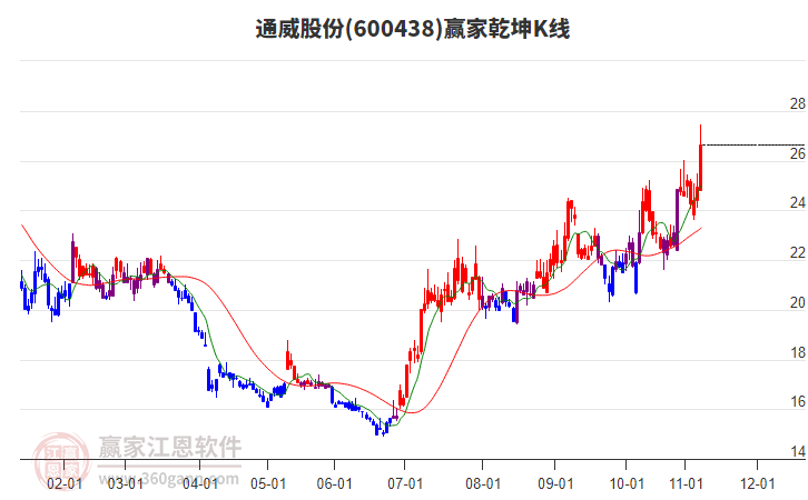 今天600438通威股份收盤價為22.0,小幅下跌3.0%,近期高點是27.75元,時間是2025年11月11日,到現(xiàn)在已經(jīng)下跌21天,600438通威股份已經(jīng)從27.75元回調(diào)了5.75元,幅度為2