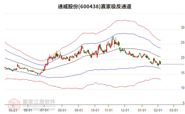 依據(jù)贏家江恩系統(tǒng)趨勢工具極反通道分析判斷通威股份600438運行在生命線以下弱勢區(qū)域,根據(jù)規(guī)則該股短線輕倉參與,股價跌至弱勢外軌線后波段再結(jié)合其它工具信號建倉。應(yīng)用口訣是:生命線上強勢走,生命線下難抬頭;紅黃兩條外軌線,壓力支撐顯勢頭。