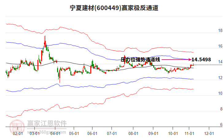 依據(jù)贏家江恩系統(tǒng)趨勢工具極反通道分析判斷寧夏建材600449運行在生命線以下弱勢區(qū)域,根據(jù)規(guī)則該股短線輕倉參與,股價跌至弱勢外軌線后波段再結(jié)合其它工具信號建倉。應(yīng)用口訣是:生命線上強勢走,生命線下難抬頭;紅黃兩條外軌線,壓力支撐顯勢頭。