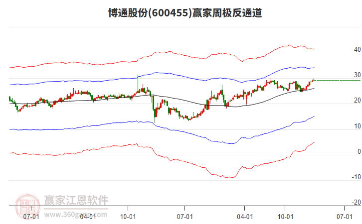 依據(jù)贏家江恩極反通道趨勢(shì)工具展示,本周股價(jià)處于生命線上強(qiáng)勢(shì)通道,本周收盤價(jià)29.37,自近期通道內(nèi)低點(diǎn)24.51上漲至本周,到達(dá)生命線26.0605點(diǎn)上方,短期關(guān)注此線支撐,如支撐不破,保持在強(qiáng)勢(shì)通道內(nèi),波段繼續(xù)看多,有望挑戰(zhàn)藍(lán)色上軌線。若跌破生命線26.0605,進(jìn)入弱勢(shì)通道,調(diào)整周期繼續(xù)延長(zhǎng)。
