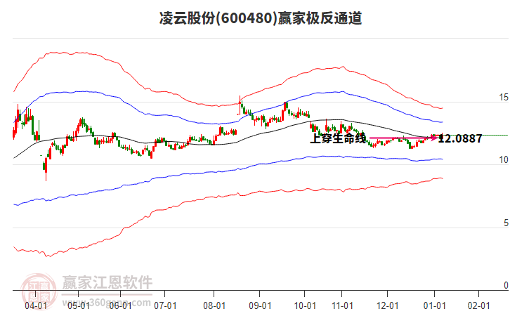 依據(jù)贏家江恩系統(tǒng)趨勢工具極反通道分析判斷凌云股份600480運(yùn)行在生命線以上強(qiáng)勢區(qū)域,根據(jù)規(guī)則該股可短線、波段結(jié)合操作;結(jié)合物極必反的原理通過分鐘圖做盤中差價,應(yīng)用口訣是:生命線上強(qiáng)勢走,生命線下難抬頭;紅黃兩條外軌線,壓力支撐顯勢頭。