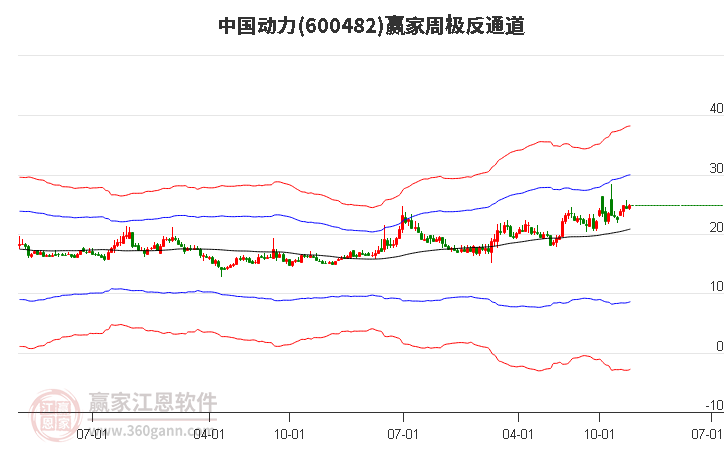 600482中國動力處于贏家江恩多頭次主線形態(tài),12月19日發(fā)出江恩筑底信號后,經(jīng)過49日,今日形成短期筑頂信號,短期多頭趨勢已被破壞,中長期多頭趨勢依舊保持。600482中國動力根據(jù)贏家江恩極反通道