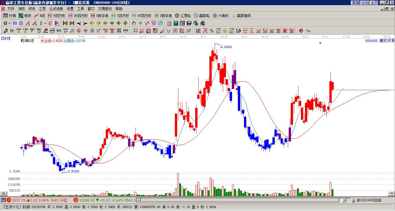 600490鵬欣資源目前大幅上漲7.14%,所屬板塊小金屬、儲能、鎳漲價、融資融券、一帶一路、鈷、有色金屬、滬港通、鋰電池短期底分型后持續(xù)上攻。600490鵬欣資源截止目前上穿江恩價格循環(huán)線工具關(guān)鍵點