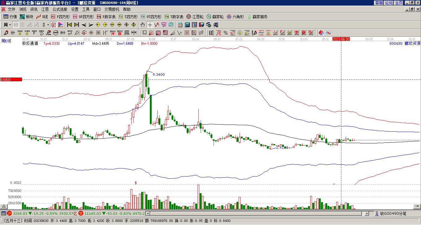 依據(jù)贏家江恩極反通道趨勢工具展示,該股于2024年10月18日突破站穩(wěn)生命線,展開一波上攻,至本周持續(xù)69周,本周股價上穿強勢通道線9.0363,由強勢通道進入超強通道,依據(jù)贏家江恩極反通道規(guī)則,站穩(wěn)一線看高一線。若能有效站穩(wěn)強勢通道線,則有望持續(xù)上攻至強勢外軌線附近,若不能站穩(wěn)強勢通道線,將繼續(xù)在強勢通道運行。