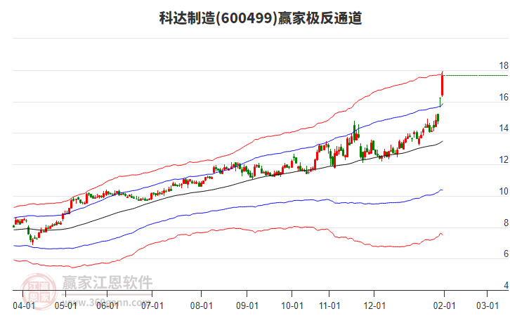 科達制造(600499)目前漲停,所屬板塊融資融券、滬港通短期底分型后持續(xù)上攻??七_制造(600499)截止目前突破極反通道強勢通道線,根據贏家江恩極反通道趨勢工具展示,上方壓力位17.6975,下方