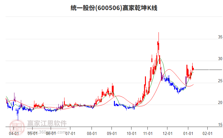 統(tǒng)一股份今日再次漲停,進(jìn)入乾坤K線紅色上漲趨勢