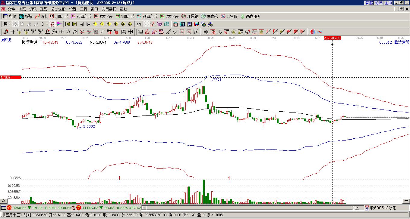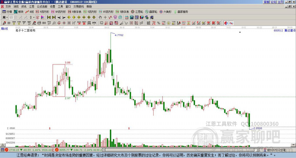 騰達建設處于贏家江恩多頭中期回調(diào)形態(tài),今日重心持續(xù)下移,短期延續(xù)下跌趨勢,7月1日發(fā)出中期江恩筑底信號后,經(jīng)過146日,今日形成中期筑頂信號,若持續(xù)下跌,觸發(fā)長期筑頂信號,騰達建設將轉為空頭主線。騰達