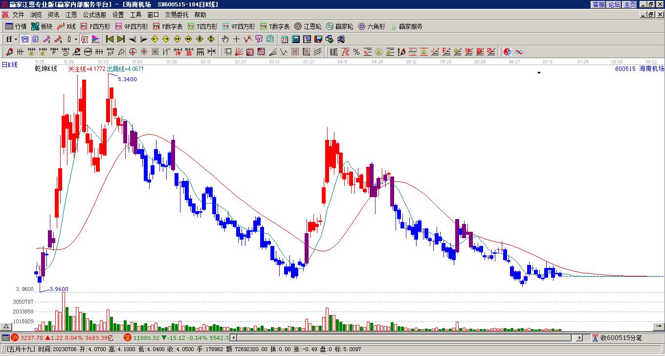 600515海南機場從高點5.76,持續(xù)回調(diào)了14天 交通設施概念近14天下跌2.13%