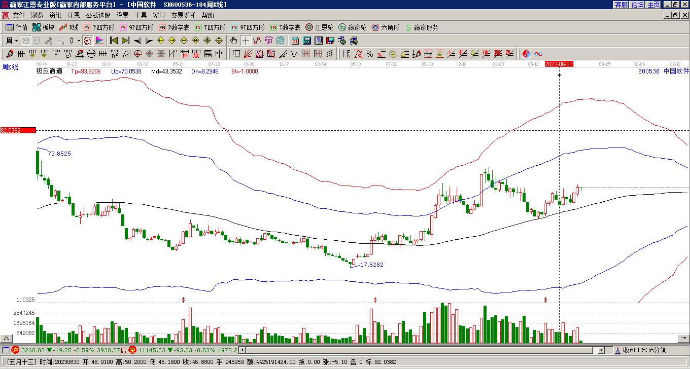 周一600536中國(guó)軟件以穿頭破腳中陽(yáng)線收盤(pán),今天是關(guān)鍵時(shí)間窗口