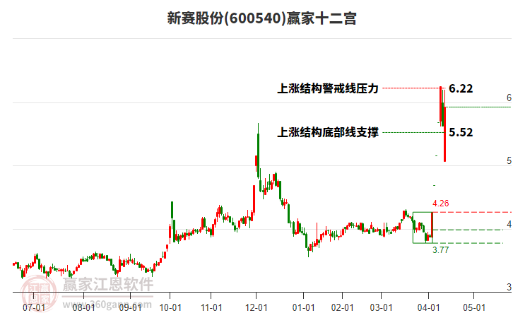 新賽股份根據(jù)贏家江恩極反通道趨勢工具展示,上方壓力位4.7805,下方支撐位4.0884。新賽股份處于贏家江恩多頭中期回調(diào)形態(tài),12月26日發(fā)出江恩筑底信號后,經(jīng)過19日,今日形成短期筑頂信號,短期多