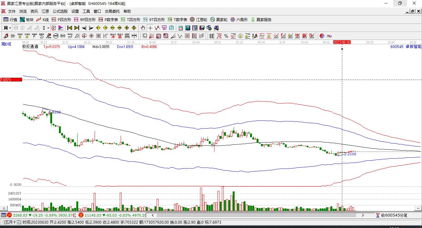 600545卓郎智能目前漲停,所屬板塊人民幣貶值、工業(yè)4.0、絲綢之路、一帶一路短期底分型后持續(xù)上攻。600545卓郎智能截止目前突破極反通道強(qiáng)勢(shì)通道線,根據(jù)贏家江恩極反通道趨勢(shì)工具展示,上方壓力位3