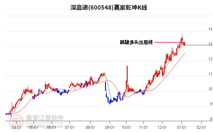 600548深高速處于贏家江恩多頭中期回調(diào)形態(tài),1月12日發(fā)出江恩筑底信號(hào)后,經(jīng)過3日,今日形成短期筑頂信號(hào),短期多頭趨勢已被破壞,中長線均在空頭下跌趨勢中。600548深高速根據(jù)贏家江恩極反通道趨勢
