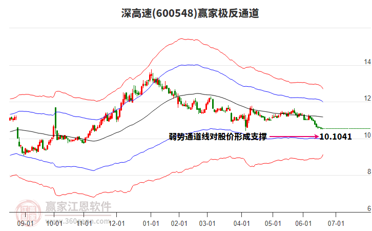 深高速處于贏家江恩多頭中期回調(diào)形態(tài),11月12日發(fā)出江恩筑頂信號(hào)后,經(jīng)過55日,今日再次發(fā)出江恩底分型并發(fā)出江恩筑底信號(hào),中長線均在空頭下跌趨勢中。深高速根據(jù)贏家江恩極反通道趨勢工具展示,上方壓力位8