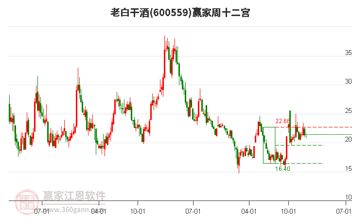 老白干酒處于贏家江恩空頭主線形態(tài),今日重心持續(xù)下移,短期延續(xù)下跌趨勢,11月3日發(fā)出中期江恩筑底信號后,經(jīng)過18日,今日形成中期筑頂信號,注意風(fēng)險(xiǎn)規(guī)避。老白干酒根據(jù)贏家江恩極反通道趨勢工具展示,上方壓