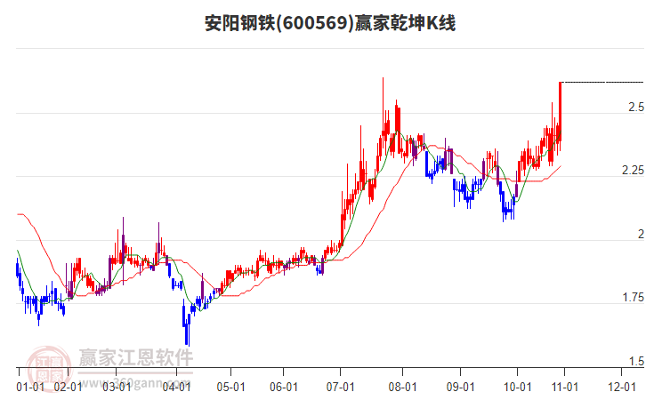 600569安陽鋼鐵根據(jù)贏家江恩極反通道趨勢(shì)工具展示,上方壓力位2.3905,下方支撐位1.921。600569安陽鋼鐵處于贏家江恩多頭主線形態(tài),從12月31日形成底分型后持續(xù)上攻,今日突破前高形成初