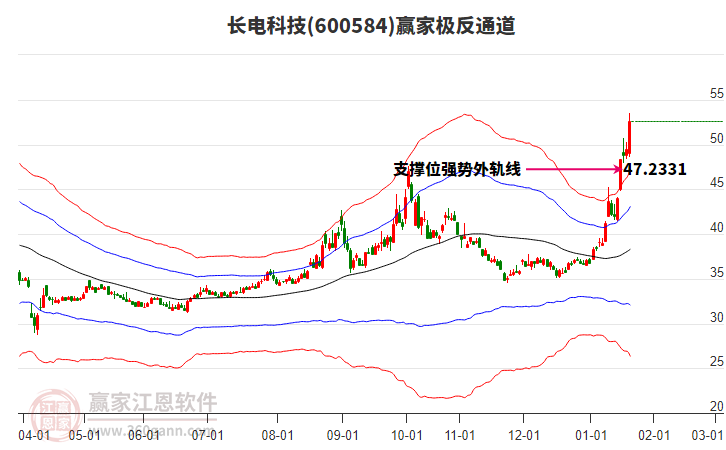 今天長電科技600584最高價45.28挑戰(zhàn)了贏家極反通道工具上方紅色外軌線,受到上方紅色外軌線強力壓制,最終收盤停留在在上方紅色外軌線與藍色外軌線上方的超強通道區(qū)域。長電科技600584近10個交易