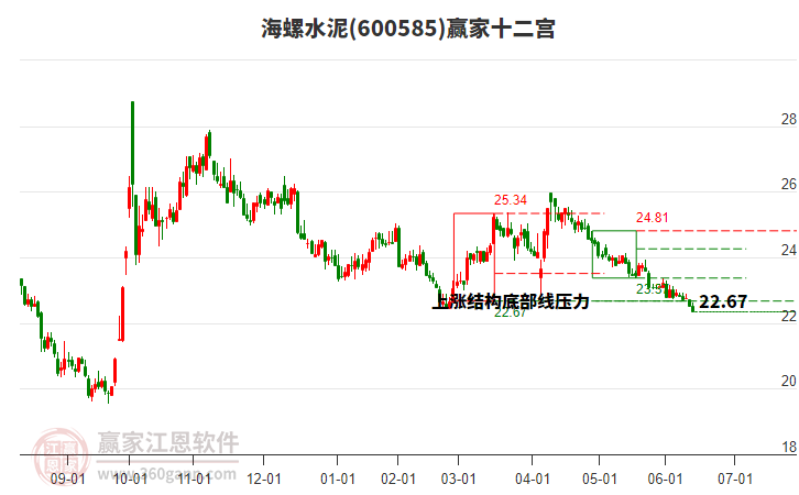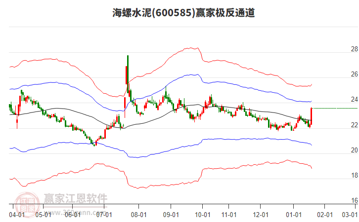 海螺水泥處于贏家江恩多頭主線形態(tài),今日重心上移,短期持續(xù)上漲,從12月17日形成中期底分型后,行情經(jīng)歷一波上漲,突破前高形成中期初次筑底信號,長期處于多頭上漲趨勢。海螺水泥根據(jù)贏家江恩極反通道趨勢工具