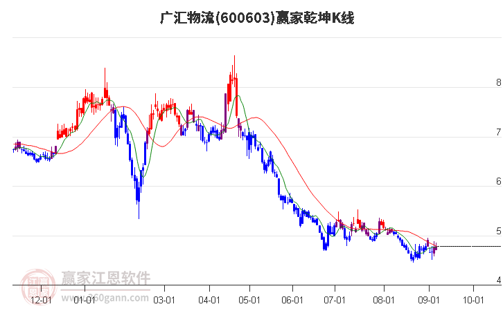 ST廣物(600603)處于贏家江恩空頭主線形態(tài),今日重心持續(xù)下移,短期延續(xù)下跌趨勢(shì),從9月8日形成中期頂分型后中期重心持續(xù)下移,今日跌破前低形成初次筑頂信號(hào),注意風(fēng)險(xiǎn)規(guī)避。ST廣物(600603)根