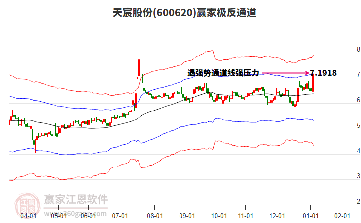 依據(jù)贏家江恩系統(tǒng)趨勢工具極反通道分析判斷天宸股份600620運行在生命線以下弱勢區(qū)域,根據(jù)規(guī)則該股短線輕倉參與,股價跌至弱勢外軌線后波段再結(jié)合其它工具信號建倉。應(yīng)用口訣是:生命線上強勢走,生命線下難抬頭;紅黃兩條外軌線,壓力支撐顯勢頭。