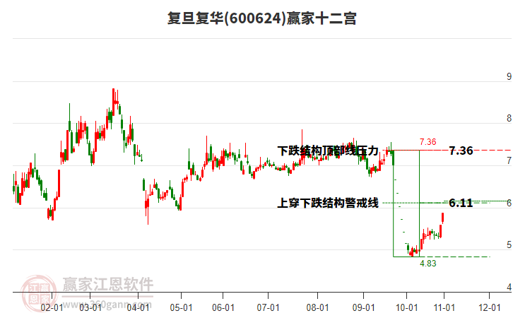 復(fù)旦復(fù)華(600624)處于贏家江恩空頭主線形態(tài),從1月26日形成頂分型后持續(xù)下跌,今日形成短期初次筑頂信號,短期多頭趨勢已被破壞,中長線均在空頭下跌趨勢中。復(fù)旦復(fù)華(600624)根據(jù)贏家江恩極反通