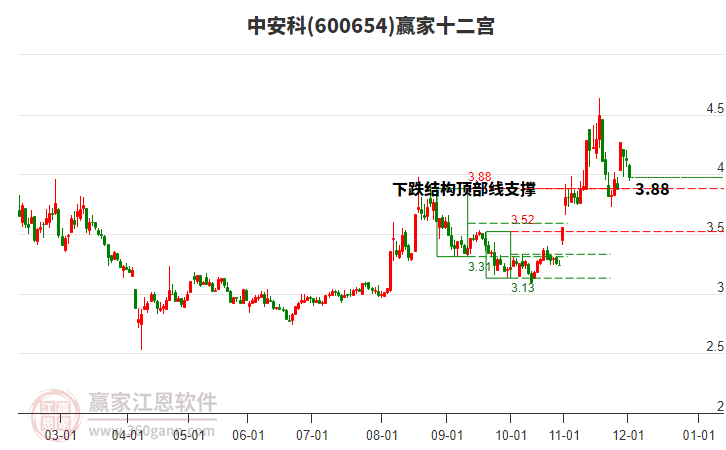 600654中安科處于贏家江恩空頭主線形態(tài),今日重心持續(xù)下移,短期延續(xù)下跌趨勢,長期發(fā)出江恩筑頂信號(hào),注意風(fēng)險(xiǎn)規(guī)避。600654中安科根據(jù)贏家江恩極反通道趨勢工具展示,上方壓力位4.3953,下方支撐