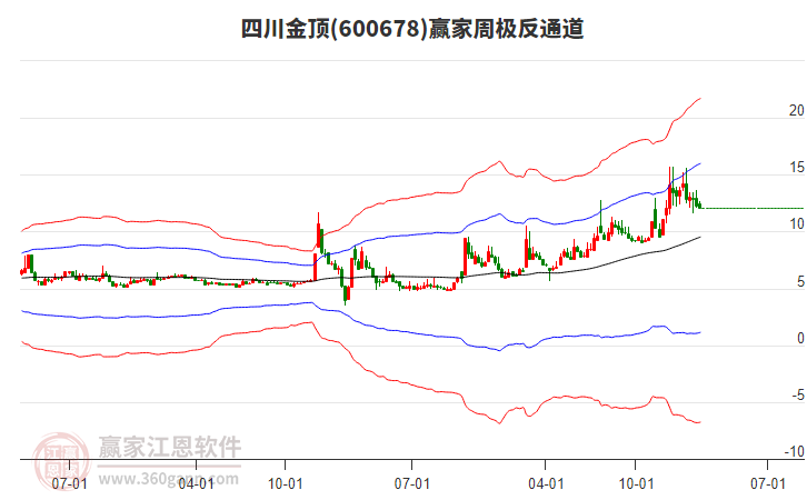 目前四川金頂最高價15.69上穿了贏家極反通道工具上方紅色外軌線,受到上方紅色外軌線強(qiáng)力壓制,最終收盤停留在在上方紅色外軌線與藍(lán)色外軌線上方的超強(qiáng)通道區(qū)域。四川金頂近10個交易日漲幅30.64%。