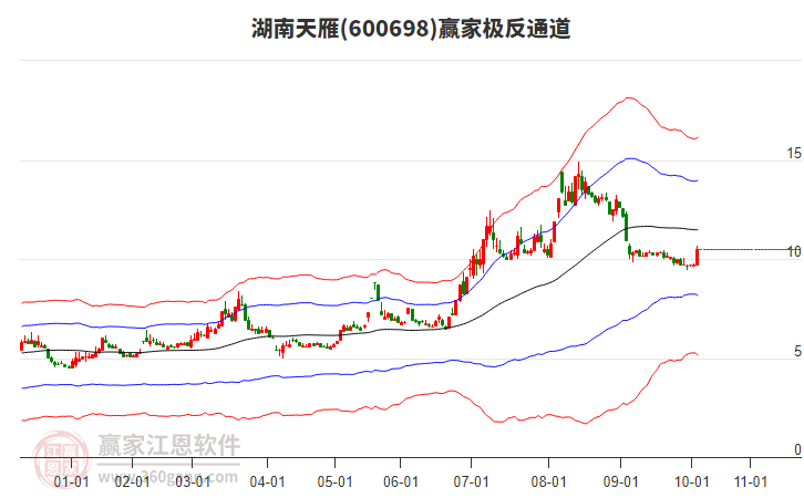 湖南天雁低開收穿頭破腳大陽線,突破波段百分比工具壓力位10.16元