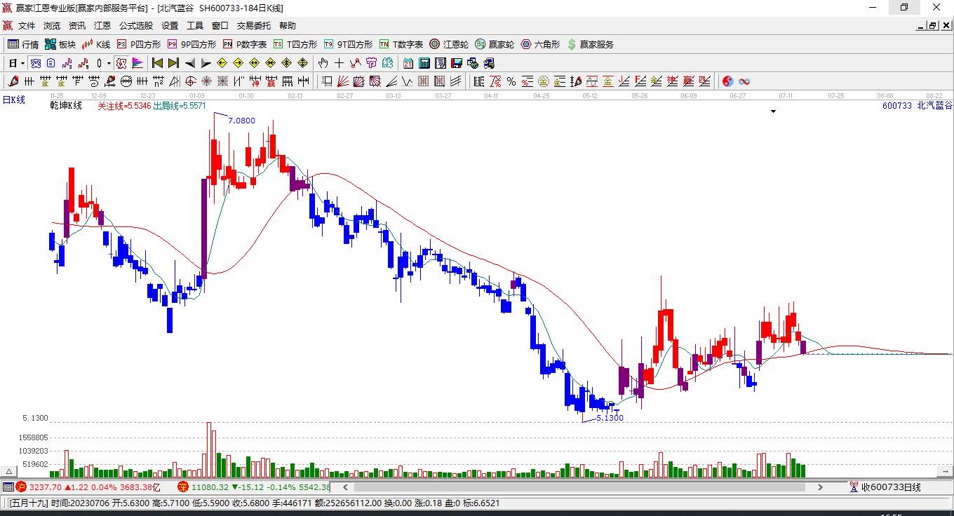 北汽藍(lán)谷今日漲停,短期發(fā)出江恩能量筑底信號(hào)