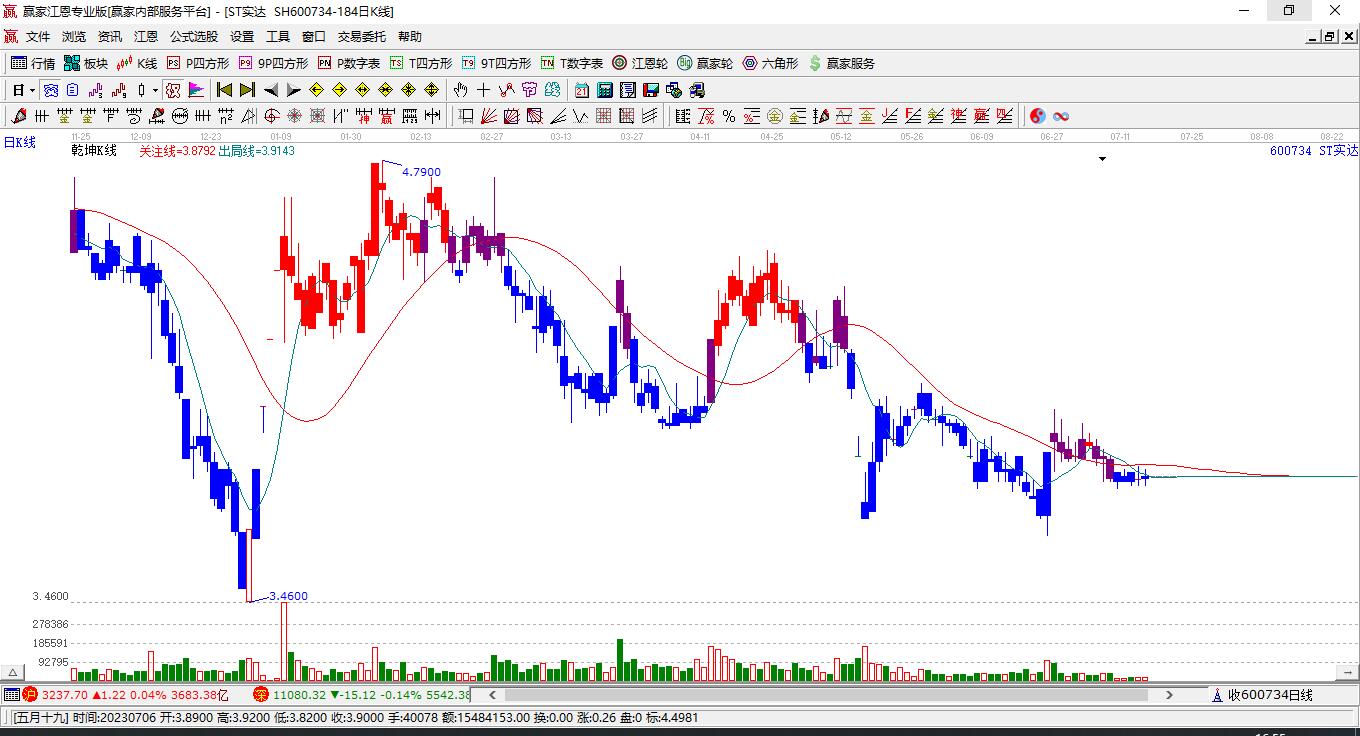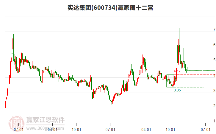 600734實達集團根據(jù)贏家江恩極反通道趨勢工具展示,上方壓力位5.132,下方支撐位3.0714。600734實達集團處于贏家江恩多頭次主線形態(tài),從1月15日形成頂分型后持續(xù)下跌,重心下移,今日跌破