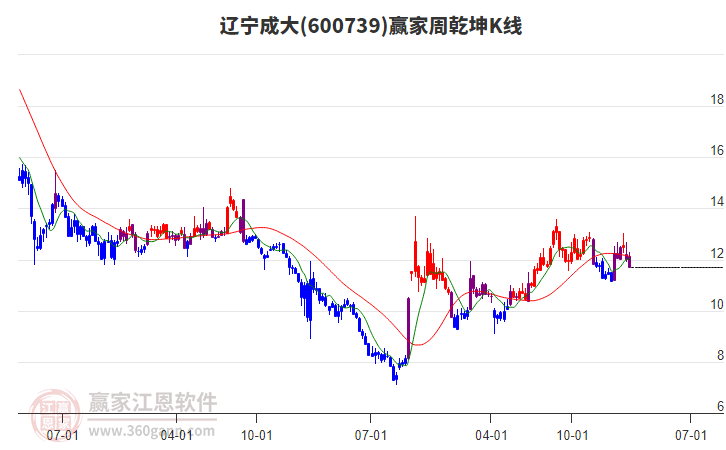 600739遼寧成大處于贏家江恩空頭中期反彈形態(tài),從11月14日形成頂分型后持續(xù)下跌,重心下移,今日跌破前低形成短期初次筑頂信號,短期多頭趨勢已被破壞,中期多頭趨勢延續(xù),但長期處于下跌中。600739
